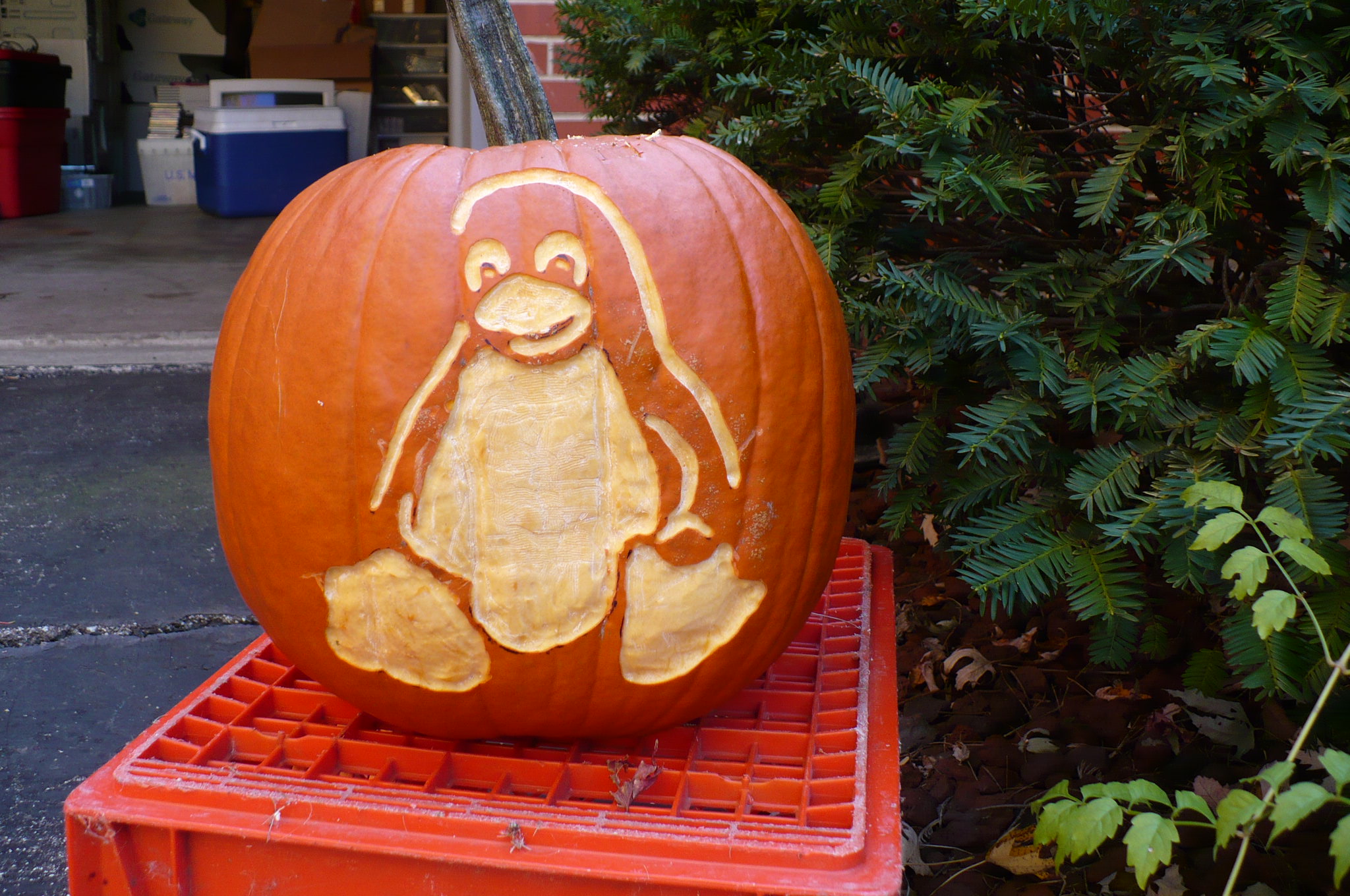 As a fun project I decided to promote Linux on Halloween. About 30 minutes with the dremel and a pattern from the web. http://www.pumpkinlady.com/tuxpattern.htm